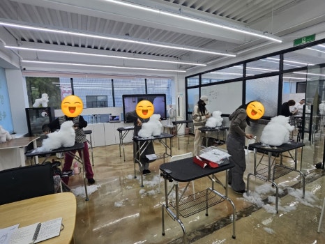 쩍벌도 섹시한(?)자세도 마다하지 않고 미용하는 우리 학생들입니다